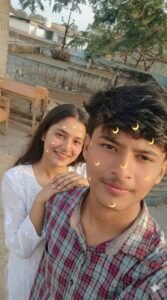 Add a beautiful 19 – 20-year-old north Indian young girl beside me . She is wearing aesthetic Indian “chikenkari kurti”, loose hairs , her hands on my shoulders, her expression is happy ,same filters applied on her face. The image looks real .