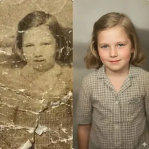 “Sharpen the textures in this image—skin, hair, clothing—and resolve the blur in the subject’s face. Make it crisp and clear, like a professional portrait.”